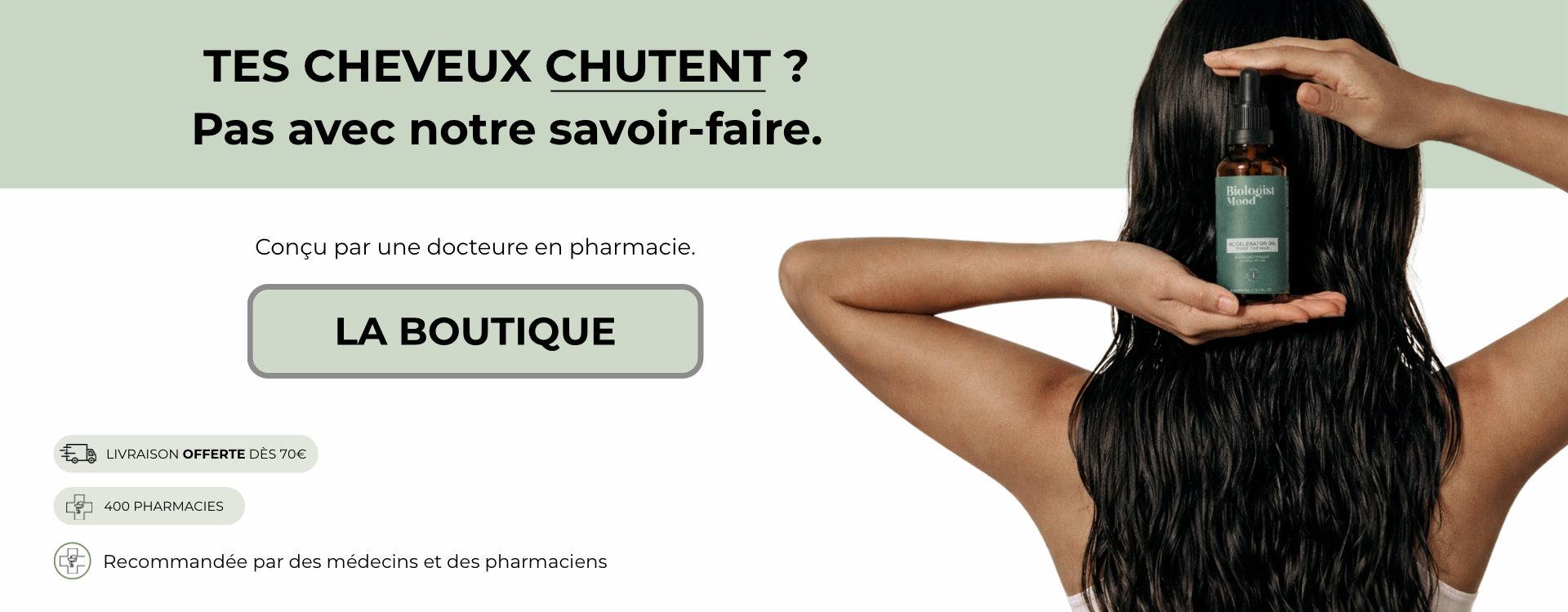 Depuis 2021, nos produits Biologist Mood sont référencés par de nombreux confrères ! En tant que professionnel de santé de première ligne, le pharmacien est là pour vous accompagner face à la chute de cheveux.