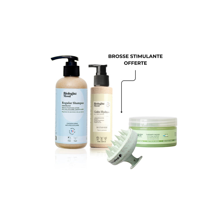 Tu peux garder cette routine constamment : le gommage 1 à 2 fois par mois, le shampoing selon tes besoins de lavage de cheveux puis la Gelée Hydra+ autant de fois que tu le souhaites, même quotidiennement.
