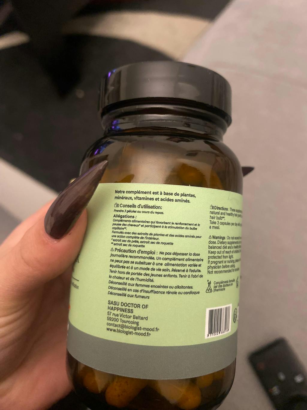 J'ai commandé ce complément pour la pousse des cheveux, mais j'ai eu la mauvaise surprise de découvrir à la réception, sur l'étiquette du flacon, la mention 'Déconseillé aux fumeurs'. Cette information cruciale (due à la présence de bêta-carotène) n'était indiquée nulle part sur la fiche produit lors de ma commande. C'est vraiment dommage, car le produit est inutilisable pour moi. Pensez à mettre à jour votre descriptif internet pour éviter ce genre de désagrément !