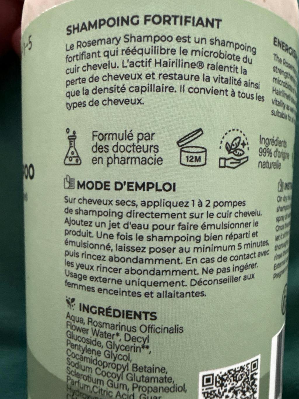 Concernant la chute, j’ai clairement vu une amélioration progressive : moins de cheveux dans la douche et au brossage. Mes racines me semblent aussi plus fortes et mes cheveux plus denses. J’apprécie énormément le fait qu’il soit sans sulfate, sans silicone et fabriqué en France.